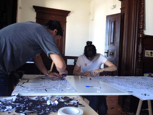 During our visit to Águeda, we also held a stencil workshop, open to the entire population and interested ones. For this action, which was integrated in the programming of Agitágueda, the role of trainer was also given to the artist Daniel Eime.
